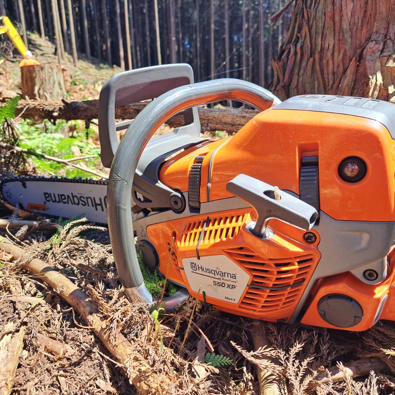 林業といえば誰でも思い浮かべる、あの頼れる相棒!伐採には欠かせない存在で、日々のメンテナンスも重要です。