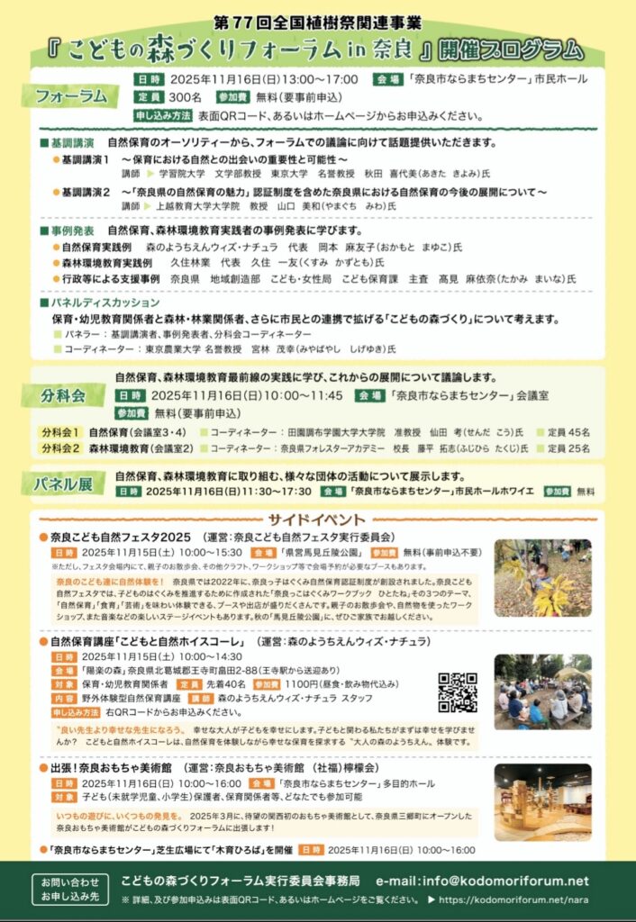 子どもの森づくりフォーラムin奈良で活動事例を発表します。
